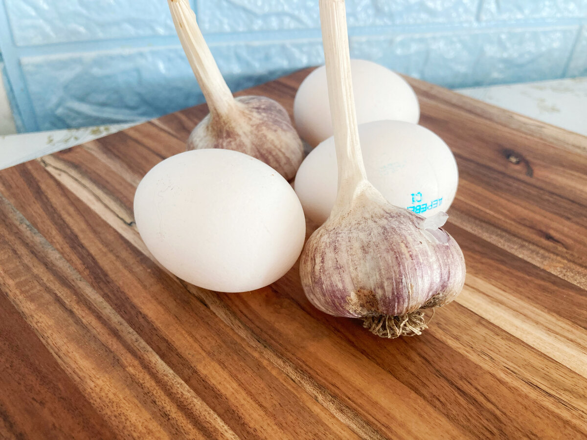 Базовыми ингредиентами здесь становятся твердый сыр, яйца, чеснок. Когда сезон молодого чеснока, мне больше всего нравится закуска именно с ним. Он особенно нежный, практически не имеет горечи, привлекает необычным свежим вкусом.