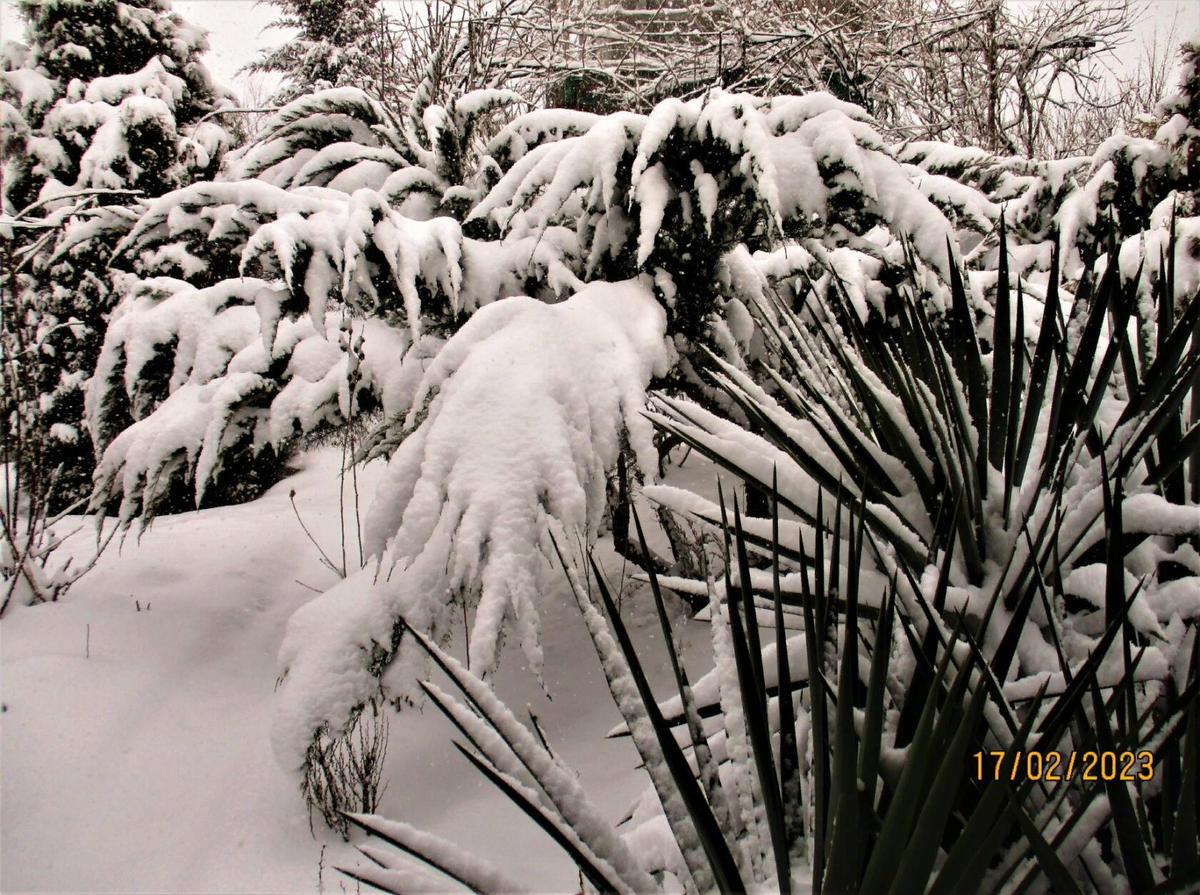 Мы так ждали весну , а пришла зима! Февраль решил отыграться за всю зиму. Прогуляемся по моему саду, посмотрим на заснеженный сад. На фото можжевельник "Минт Джулеп" и юкки. Можжевельники "Минт Джулеп", справа "Стрикта" Слева можжевельник "Кинг оф Спринг". За аркой из можжевельников "Скайрокет" туи "Голден Глоб" и "Эрикоидес". Наш кот не поймёт, что случилось, такого снега он ещё не видел. Можжевельники виргинские под снежными шапками. Можжевельники "Скайрокет" развалили ветки от тяжести снега. Кот готовится к прыжку. Не нравится ему гулять по снегу, так же , как и мне. Живая изгородь из виргинских можжевельников вдоль забора. Из такого же можжевельника выстригла шары. Можжевельники "Скайрокет" и "Кинг оф Спринг". Можжевельник виргинский , он самый высокий в саду . Высота его метров семь. Голые ветки бузины и роз. Я розы не укрываю. Можжевельник "Стрикта" вокруг кусты роз. В центре развалился от снега можжевельник "Кинг оф Спринг". По краям туи "Смарагд". Можжевельн