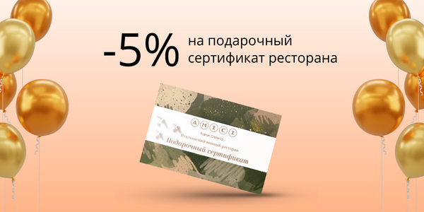 Акция! С 17 февраля по 2 марта 2023 год на сайте Giftery.ru действует скидка -5% на подарочный сертификат винного ресторана Osteria Amici.