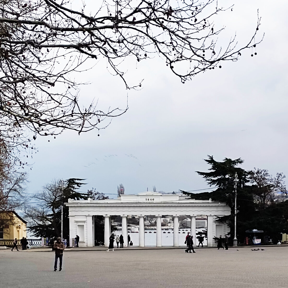 Оставшись одна, и вспомнив, что до десяти тысяч еще шагать и шагать, я просто вышла из автобуса, и осознала, что я в двух шагах от Графской пристани, и это осознание сделало меня счастливой. Я вспомнила, что здесь есть очень приличная кофейня и пошагала ее искать. Ну как и ожидалось, все нашлось, и море, и кофейня. Конечно за два с половиной года она преобразовалась, но цена порадовала. Шоколадки я купила еще утром, как будто чувствовала, что у меня сегодня будет американо, поэтому в ожидании кофе болтала с бариста, приятной девушкой неопределенных лет. Кофе пах божественно, я сыпанула в него корицы, закрыла крышкой, чтобы не остывал, и пошла искать лавочку в парке. Лавочка нашлась прямо над морем. Меня не интересует море, как водоем , в котором можно купаться, но мне всегда нравится слушать прибой и смотреть на волны. Я расположилась на лавочке, достала шоколадку, отхлебнула, и попала в параллельную реальность. Как же там было хорошо, тихо, воздух замер над набережной, не было никаких