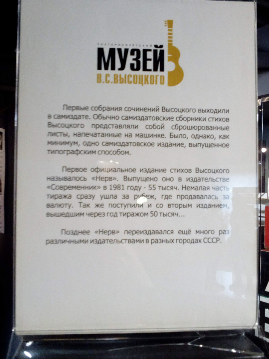 Приветствую всех на моём канале! Сегодня расскажу вам мои дорогие читатели и подписчики, об одном очень знаковом месте нашего города. Музей Владимира Высоцкого, располагается на 2 и 3 этаже одноимённого бизнес-центра. На высоте 186 метров небоскрёба расположена смотровая площадка. При покупке билета на площадку посетителям выдаются бесплатные билеты в музей. Если идти платно, стоимость взрослого билета - 200 рублей, льготный - 100 рублей. Фотографировать и снимать в музее не запрещается. Мы ходили туда самостоятельно, можно заказать индивидуальную или групповую экскурсию, продолжительностью 60 минут. Музей был открыт 25 января 2013 года - в день 75-летия со дня рождения Владимира Высоцкого. Курирует музей Никита Высоцкий. Музей занимает 2 этажа и уже поднимаясь по лестнице, можно полюбоваться на фотогалерею Высоцкого. В начале экспозиции представлены легендарный Mercedes 350 W 116, принадлежавший Высоцкому и его восковая фигура. В те времена на таких машинах ездили лишь единицы и