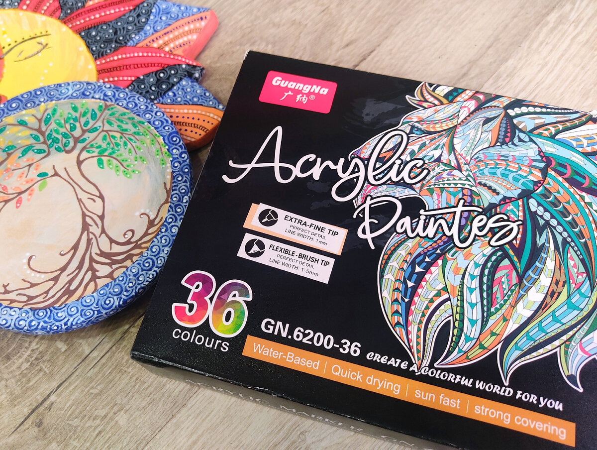 Решила сделать для своей загородной террасы интерьерную штучку. Нужно было нарисовать рисунки , которые кистью и акриловыми красками, мне, как не художнику, не под силу сделать ровными и с четкими линиями. Стала искать, чем можно заменить акриловые краски. Чтобы не размыло при покрытии лаком, быстро сохло, была возможность нарисовать мелкие детали. И нашла акриловые маркеры GuangNa 36 цветов. Не знала, что такие вообще существуют.