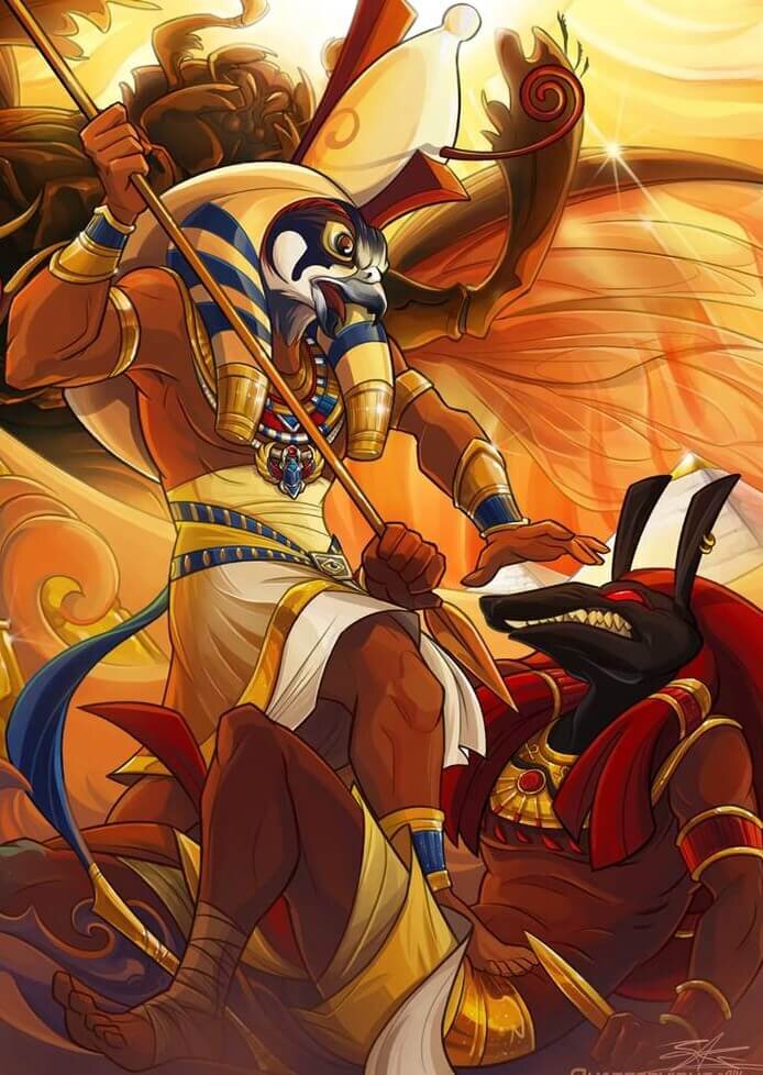 Борьба Гора и Сета это своего рода продолжение мифа об Осирисе и Исиде, известный в нескольких вариантах, первый вариант это окончание моей предыдущей статьи, где Сет загремел в подземный мир и у богов наступил мир. А вот второй вариант я сейчас и поведаю. После смерти Осириса, Сет захватил власть над Египтом, и Исида естественно свалила из города в другую страну. Гор, сын Исиды и Осириса был изображен с головой сокола, а его символом выступало солнце с распростертыми крыльями, кстати говори очень напоминающим настоящих христианских ангелов. Когда Гор стал по старше, понял что пора бы выгонять своего дядю нафиг блин из города и соответственно вступил с ним в борьбу. Прежде чем драться с Сетом, к Горо явился его покойный батька Осирис и научил его дрынькать руки, чтобы в дальнейшем настучать Сету по его ослиной башке. Да, именно ослиной и именно башке, так-как Сета в древнем Египте олицетворяли в образе человека с головой осла. После долгих разборок между ослом Сетом и ангелом Гором, к