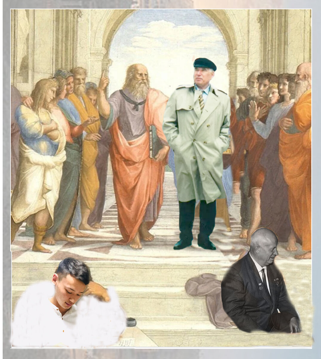 - Сыйыңыздарга ыраазыбыз, Платон аке. Улуу Сократ ага менен жолукпай калганыма мен да капамын. Акылмандуулук эмне экенин тескерисинче мен андан сурап, чер жазмак экенмин. Болбосо бизде дагы акыркы убакта чер жаза сүйлөшчү философтор да аз болуп кетти, Платон аке. Баарыбыз философиядан сөз баштаганда эле диалектик материализмден баштап, кайра ошондон эле бүтүрүп коюп жатабыз (күлүп). Орустар демекчи, биздин биринчи секретарь жолдош Никита Хрущев бүтүндөй Элладага, анын ичинде сизге өзүнчө салам-дубай жолдоду. Жакында боло турчу полистик визитинде Афина жана Спартада болууну жана социалистик идеяларды жекече үй-чарбасы менен кантип айкалыштырууну сиздер менен акылдашууну пландап жатканын айтты. Менин келишим жазуучу катары гана эмес, алдын ала дипломаттык мааниде да караса да болот го дейм. Ким билет, алдыңкы жылдары сиздердин өлкөгө дипломат болуп да келип каламбы.