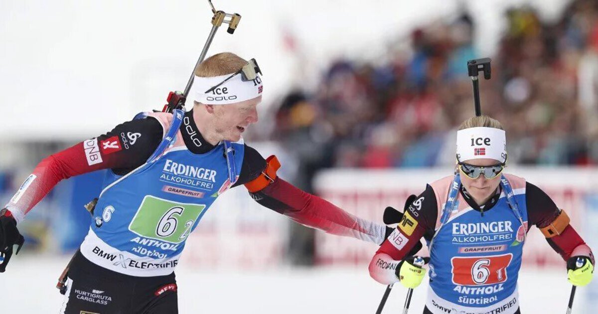 Сборная Норвегии выиграла сингл-микст на чемпионате мира-2023 по биатлону. Чемпионат мира по биатлону Оберхоф, Германия Сингл-микст 1. Норвегия (Марте Ульсбю-Ройселанн, Йоханнес Бо) – 35.37,1 (1+6) 2. Австрия (Лиза Тереза Хаузер, Давид Коматц) – 13,8 (0+6) 3. Италия (Лиза Виттоцци, Томмазо Джакомель) – 51,0 (2+9) 4. Швеция (Ханна Оберг, Себастьян Самуэльссон) – 1.16,4 (1+12) 5. Франция (Лу Жанмонно, Фабьен Клод) – 1.21,9 (1+12) 6. Германия (София Шнайдер, Филипп Наврат) – 1.30,7 (1+12) 7. Словения (Полона Клеменчич, Яков Фак) – 1.38,1 (0+8) 8. Молдова (Алина Стремоус, Максим Макаров) – 2.00,7 (0+7)... 12. Швейцария (Лена Хекки-Гросс, Никлас Хартвег) – 2.41,3 (2+21)... 15. Украина (Анастасия Меркушина, Дмитрий Пидручный) – 2.48,2 (4+11)... 19. Латвия (Байба Бендика, Андрей Расторгуев) – 3.47,7 (4+16) Южная Корея (Екатерина Аввакумова, Тимофей Лапшин) – отстали на круг. Расписание трансляций чемпионата мира по биатлону-2023 в Оберхофе