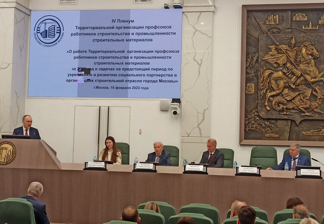 В столичном Департаменте строительства прошел IV Пленум Московского городского комитета Территориальной организации профсоюза работников строительства и промышленности строительных материалов. Представители власти, Московской Федерации профсоюзов, крупных строительных холдингов и профсоюзные активисты обсудили вопросы социального партнерства и его развитие в сфере. В мероприятии принял участие заместитель мэра Москвы по вопросам градостроительной политики и строительства Андрей Бочкарев. Московскую Федерацию профсоюзов на заседании представляли руководители департаментов и председатели Окружных советов. Участники подвели итоги работы профсоюза в 2022 году и наметили вектор деятельности на Год укрепления и развития социального партнерства. Особое внимание уделили контролю за выполнением трехсторонних соглашений и коллективных договоров в части соблюдения социально-экономических прав членов профсоюзов и требований охраны труда. Например, индексации зарплат и оказании помощи семьям участн