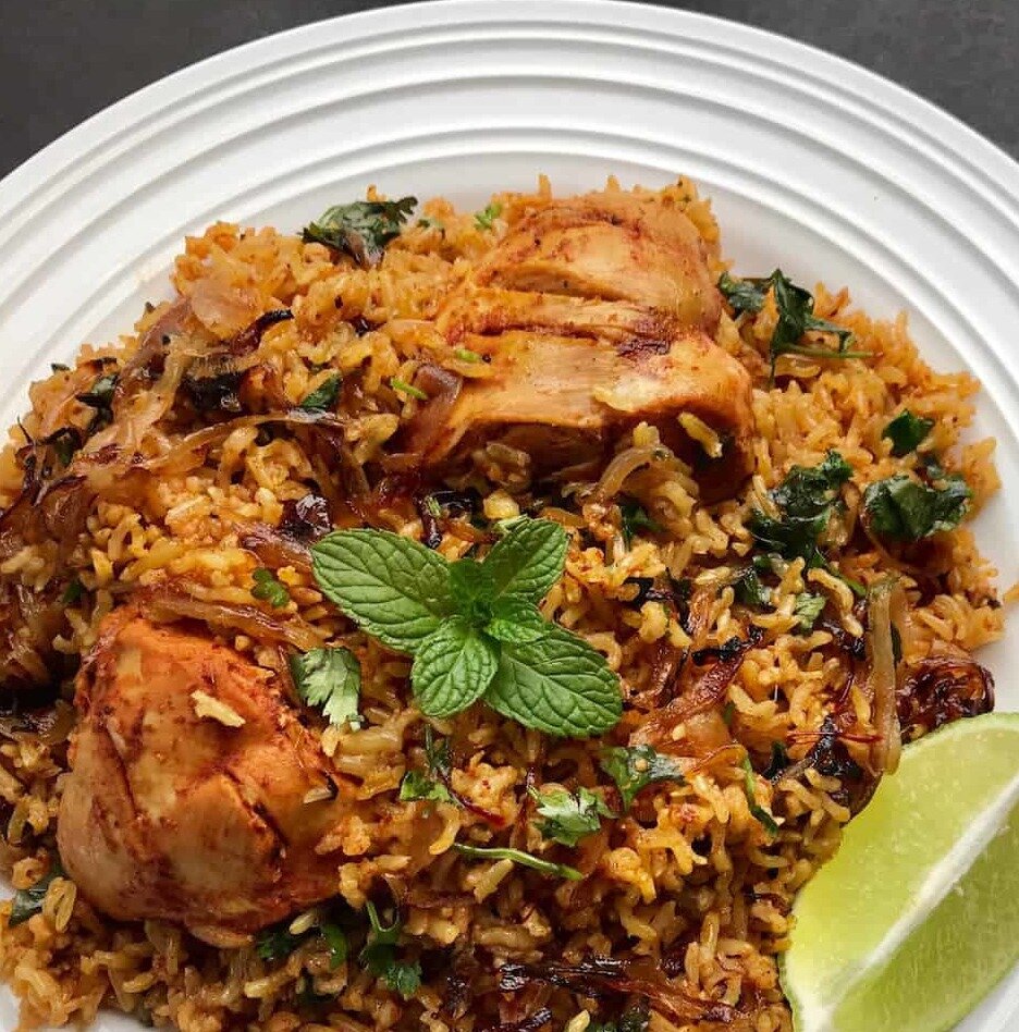 Бирьяни — это популярное индийское блюдо, которое обычно готовят из смеси специй, риса и мяса (например, курицы, баранины или говядины) или овощей. Считается, что бирьяни возник на Индийском субконтиненте и является фаворитом во многих частях страны, а также в соседних странах, таких как Пакистан и Бангладеш. Точный рецепт бирьяни может варьироваться в зависимости от региона и предпочтений повара, но, как правило, он включает в себя приготовление мяса или овощей со смесью специй, затем наслоение смеси с частично приготовленным рисом и слияние ароматов. Блюдо часто украшают свежей зеленью, жареным луком и/или вареными яйцами. Бирьяни — ароматное и сытное блюдо, которое можно подавать отдельно или с такими добавками, как райта (гарнир на основе йогурта), чатни или пападум (разновидность хрустящего тонкого хлеба). Его любят в особых случаях, таких как свадьбы и фестивали, а также его можно найти во многих индийских ресторанах по всему миру. Рецепт традиционного индийского бирьяни: Ингред