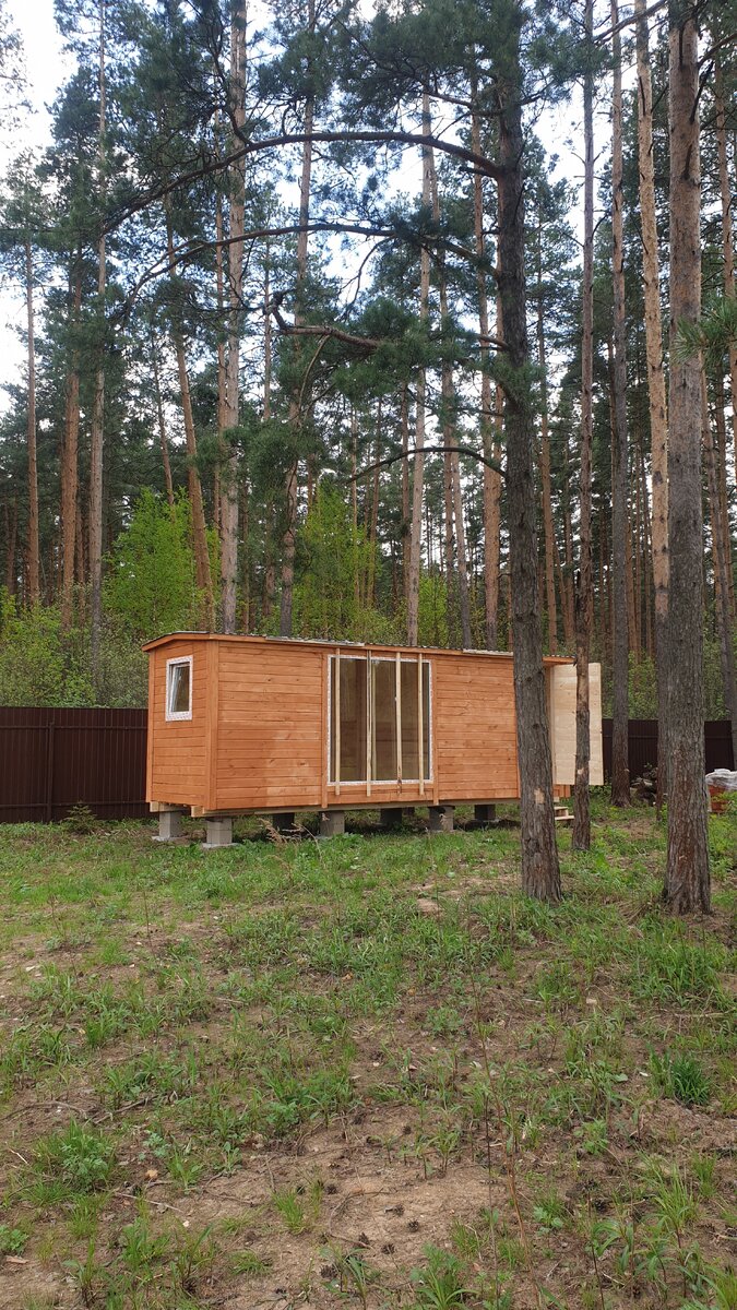 Когда-нибудь, когда у нас сразу появятся 10-20 миллионов рублей - мы построим на нашем участке в 24 сотки два дома: один большой для жизни и один маленький домик-студию, который станет моей творческой мастерской - той самой работой, на которую можно будет уходить каждое утро. Ну а пока было решено возвести небольшое летнее деревянное сооружение, чтобы иметь место, куда можно было бы приезжать на выходные с мая по октябрь пожарить мясо, перезагрузиться и отдохнуть. В конце концов, своим участком хочется пользоваться уже сейчас, а не ждать накопления мифических миллионов, которые могут случится через десяток-другой лет, когда уже не будет, возможно, ни сил ни желания заниматься стройкой и вот этим вот всем. Мы заказали бытовку на Авито. Просто нашли человека, у которого большое портфолио работ, много отзывов и который может собрать ее по нашим размерам, учитывая наши пожелания. А пожелание у меня было особенное: панорамное сплошное окно в пол. Ещё бы! Наш участок наполовину находитс