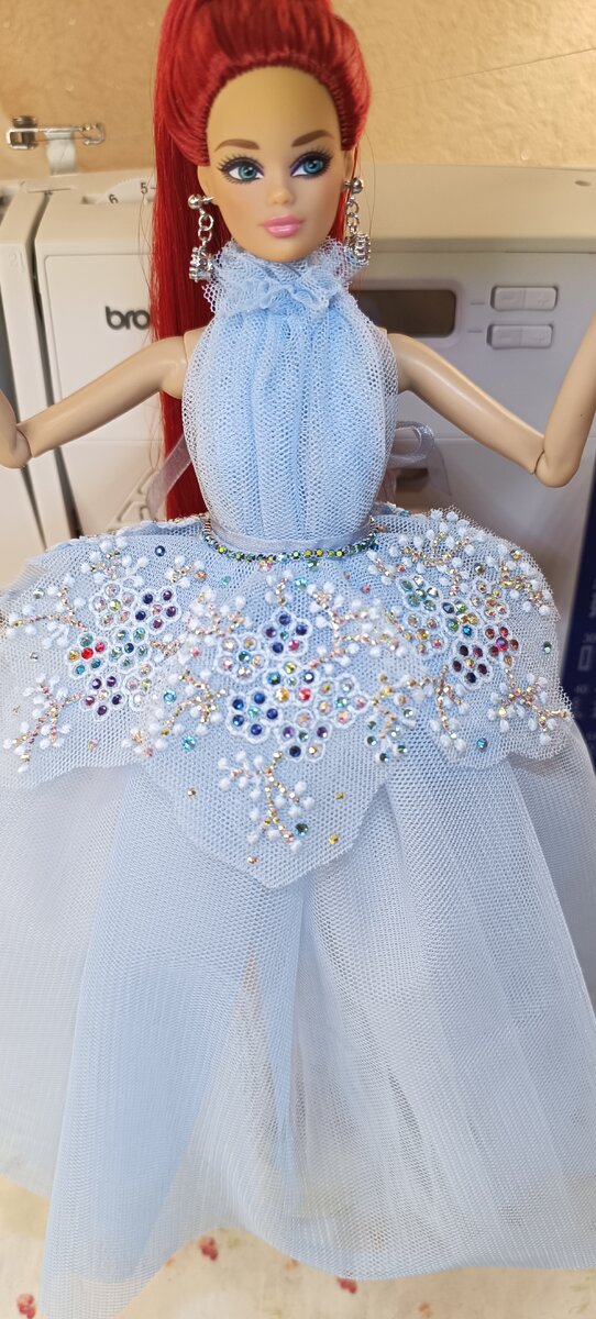 Остановилась я на том, что сделала сверкающую красивую незабудку на платье)) где центром цветка стала сама куколка 🩵❤️🔥🩵
