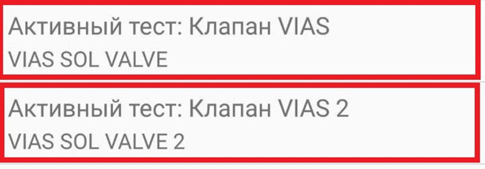 -мембрана актуатора порвана (будет слышно шипение по нажатию кнопки Включить). Для проверки работоспособности соленоида можно послушать его щелчки про проведении тестов Активный тест: Клапан VIAS / Активный тест: Клапан VIAS 2. Для этого лучше заглушить ДВС, включить зажигание и провести тестирование. По нажатию в тесте кнопки Включить на рабочем соленоиде будет слышен щелчок. Более подробную проверку соленоидов и др