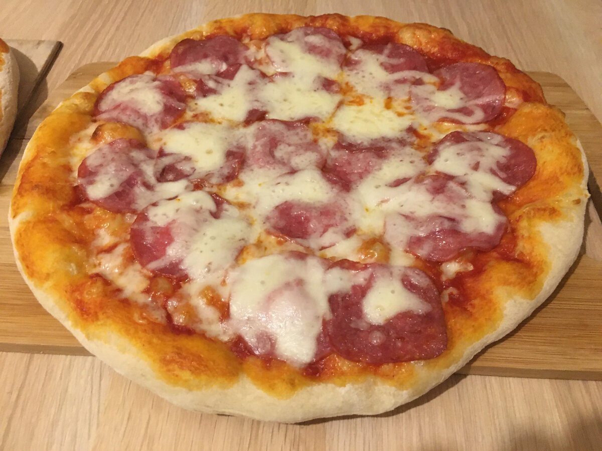 Всем привет. Вы опять на моей кухне. И сегодня, я буду готовить наивкуснейшую пиццу по итальянскому рецепту в домашней духовке. Но есть нюанс. У вас в духовке должен быть специальный камень для выпечки, так как без него, к сожалению, пицца может не получится. У меня так и было. И так, погнали. Что нам понадобиться для приготовления пиццы? Самое главное - это время, так как приготовление к выпечке занимает 2 дня. По ингредиентам. Там все просто: Способ приготовления. День первый. Самый простой. Мы берем 200 грамм муки, 200 мл воды, 5 грамм меда и 5 грамм сухих дрожжей. Все складываем в миску и очень хорошо перемешиваем. Должно получиться так, как у меня на картинке. Закрываем крышкой и убираем в холодильник. Все, мы справились, и первый день закончен. На следующий день, у нас это день второй. Берем большую миску и в нее наливаем воду 400 мл. и закидываем туда вчерашнюю смесь. Все перемешиваем и начинаем довалять муки 710 грамм. В процессе добавления муки, так же добавляем соль 30 г