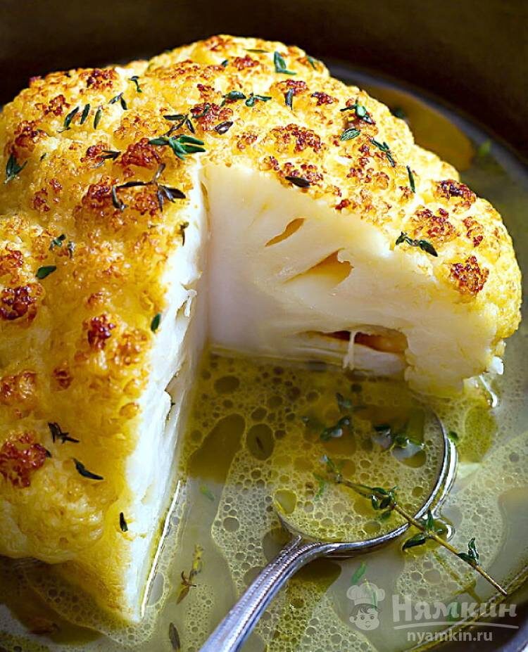 Затем каждое соцветие обволакиваем в яйце, затем обваливаем в панировочной смеси. Выкладываем на противень и отправляем в разогретую до 180° духовку на 15-20 минут.