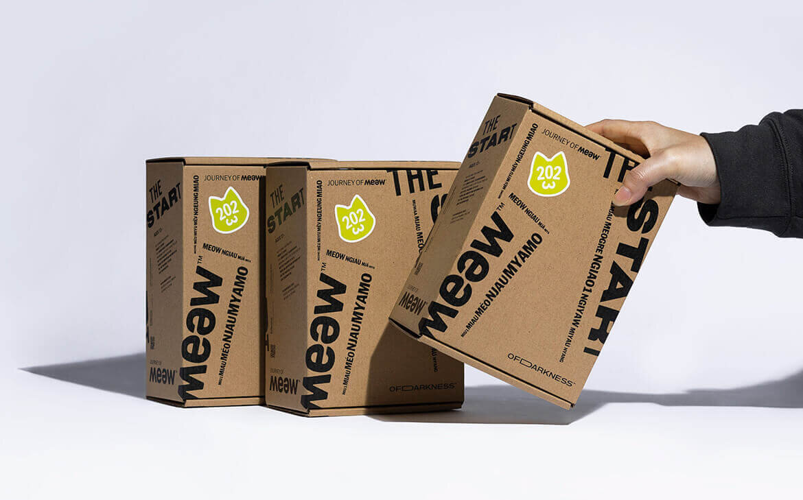 Перед вами картонная коробка для дизайнерской фигурки кота Meow от компании OfDarkness™. Наверняка многим из вас будет интересно, что означают слова в дизайне этих коробок, и почему создатели выбрали такой путь. Концепт дизайна Слова на упаковке коллекционной фигурки означают кошачье мяуканье на 23 разных языках. При выборе слов для принта дизайнеры использовали «Википедию», чтобы сделать тексты как можно более разнообразными. Создатели упаковки на самом деле любят кошек. Слова на принте переплетаются друг с другом и выстраиваются в свободные и динамичные линии. Они складываются в узор, который напоминает царапины от кошачьих когтей на картоне. Линии проходят в горизонтальном и вертикальном направлении без строгой закономерности. Это напоминает городские улицы и переулки, пересекающиеся и переплетающиеся между собой. Так выглядит сверху город OD Town в мире кота Meow. Все элементы дизайна рассказывают историю на одном языке, но у каждой детали есть скрытый смысл. Для доставки коллекцио