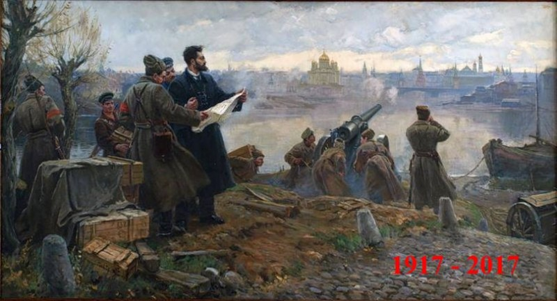 Большевики Замоскворечья во главе с Павлом Карловичем Штернбергом обстреливают Кремль. Ноябрь 1917 года. Картина украшала вестибюль Государственного астрономического института имени П.К.Штернберга при Московском университете Иван Евстигнеев (1899—1967) и Виктор Дмитриевский (1923—2006). Большевики Замоскворечья во главе с Павлом Карловичем Штернбергом обстреливают Кремль. Ноябрь 1917 года