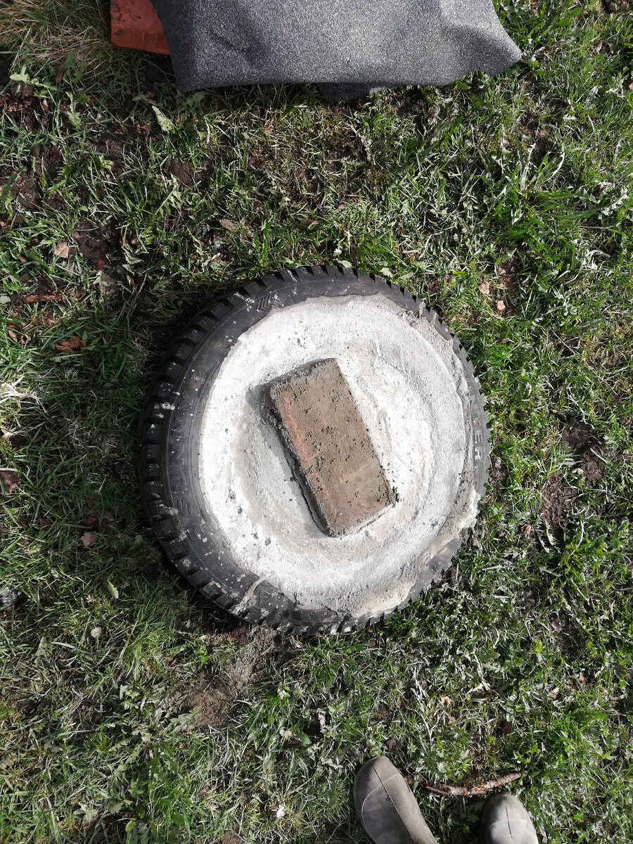 И снова здравствуйте. Давно не писал, дом построили, остались мелкие недоделки, которые не стоят написания статьи. Так как дом построили решили построить баню, мыться где-то надо, да и после морозца хорошо погреться. С начало мы думали купить баню бочку или типа вагончик, но на тот момент из-за роста цен на материалы бани были золотыми и конструктив некоторые предлагали просто барахло. Посовещавшись решили сами, что за такие деньги мы сами построим то, что нам надо и как надо. Фундамент решили делать такой же как под сарай, взял старые покрышки, внутрь заложил мусорный мешок, чтобы отсечь бетон, который буду заливать внутрь, от влаги от земли. На пакет сложил друг на друга кирпичи и залил цементно-песчаной смесью. Вот такой фундаментный блок получился, я думаю вечный. Далее я эти блоки выставил в размер и по уровню по габаритам бани. Колеса прикрыл рубероидом, чтобы дождь и снег не попадали на бетон. Баню решили строить из доски 50х100, размер бани 2500х6000. Был нарисован чертеж бани