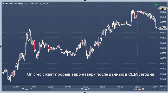 Данные PPI могут показать дальнейшее ослабление ценового давления в ноябре, что может усилить ожидания того, что Федеральная резервная система замедлит темпы повышения процентных ставок 14 декабря, и может спровоцировать «еще один штурм EUR/USD выше максимума этого месяца 1,0594, а затем и юньские максимумы выше 1,06», — отмечают аналитики Unicredit. «Ожидается, что относительно стабильные показатели настроений Мичиганского университета также не вдохновят доллар США».