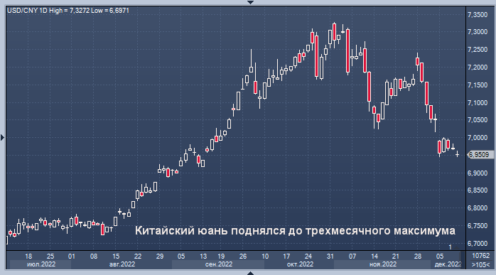 Континентальный юань поднимается до самого сильного уровня за три месяца на фоне растущих ожиданий того, что власти могут усилить поддержку испытывающего трудности сектора недвижимости на ключевом экономическом заседании на следующей неделе. Доллар США/юань падает на 0,3% до 6,9479 после снижения на 0,5% до 6,93, самого низкого уровня с 13 сентября; доллар США/CNH падает на 0,2% до 6,9475. НБК установил курс юаня на уровне 6,9588 за доллар, выше средней оценки в 6,9611 в опросе аналитиков и трейдеров, проведенном Bloomberg.