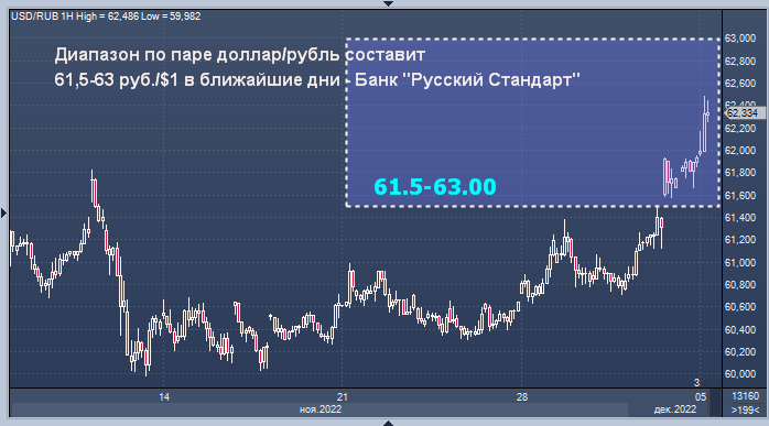 Торговый диапазон по паре доллар/рубль составит 61,5-63 руб./$1 в ближайшие дни - Банк "Русский Стандарт"