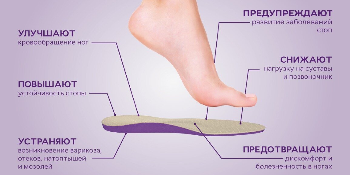 Ортопедические стельки предназначены для фиксации стопы в определённом положении. Они позволяют не допускать возникновения тех или иных заболеваний ступни (профилактические модели), либо уменьшить боль и дискомфорт при ходьбе при наличии дефектов стопы (лечебные стельки). В зависимости от назначения они отличаются по форме, размеру, конструкции и принципу воздействия. Кому необходимы ортопедические стельки По мнению специалистов, использовать профилактические ортопедические вкладыши нужно профессиональным спортсменам, будущим матерям, любительницам высоких каблуков, а также людям, которые много времени проводят на ногах. Лечебные стельки прописывают людям, страдающим: Польза ношения ортопедических стелек Для видимого эффекта и ощутимой пользы от ношения вкладышей необходимо пользоваться всеми предписания врача-ортопеда. Профилактические стельки предназначены для снижения нагрузки и предотвращения развития заболеваний. Оно держат стопу в физиологически правильном положении