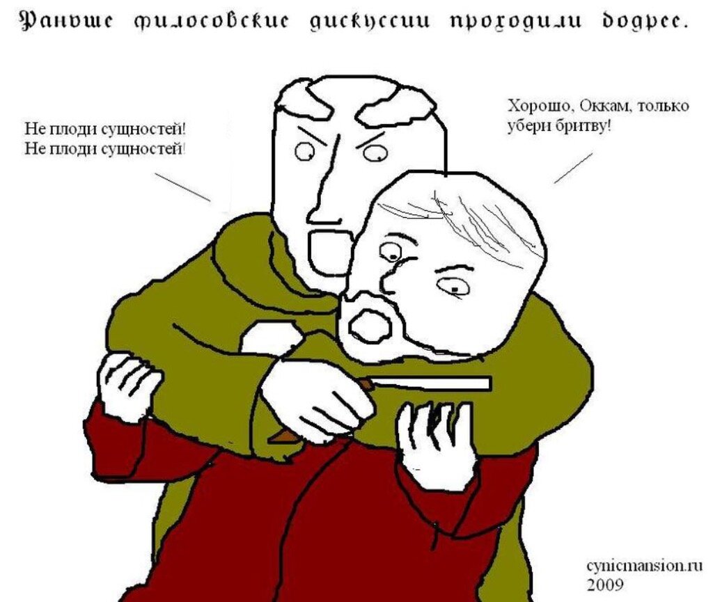 Принцип Бритвы Оккама гласит: «не следует привлекать новые сущности без крайней на то необходимости» или «из двух возможных объяснений, истинным, вероятнее всего, окажется простейшее».