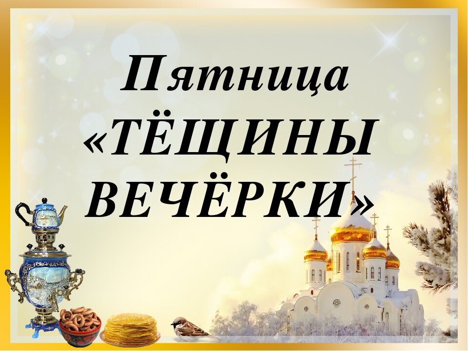 В Тёщины вечерки зятья показывали расположение тёщам и их близким. Таким образом пятница становилась днём укрепления родственных связей.