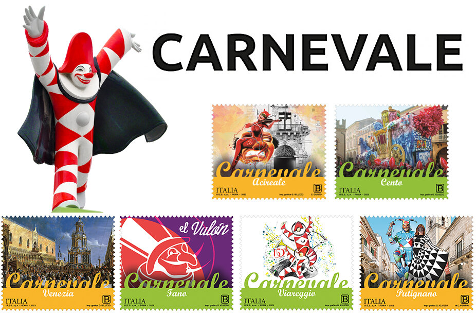 Почта Италии выпустила марки из серии: "художественное и культурное наследие", посвященные итальянским карнавалам. Марка воспроизводит картину венецианского художника Габриэля Беллы, сделанную между 1779 и 1792 годами, под названием “Festa del quattro grasso in Piazzetta”, хранящуюся в пинакотеке в Венеции. Праздник смело можно назвать Масленицей. Кульминацией праздника был полёт человека с крыльями, его подвязывали на канатах смазанными жиром. Их завязывали на кольцах, которые в свою очередь были продеты в тросы протянутых вдоль площади Сан-Марко. Один из тросов был закреплён на колокольне, другой на балконе дворца. Актёр проделывал воздушный путь к дожу, дарил ему цветы и распевал хвалебные сонеты, раззадоривая толпу, внизу стояли акробаты поражая своим мастерством. Народу на площади было примерно столько, сколько сейчас без всяких карнавалов. Карнавал Ачиреале, считающийся самым красивым и ярким на Сицилии, является одним из самых аутентичных и захватывающих событий фольклора о
