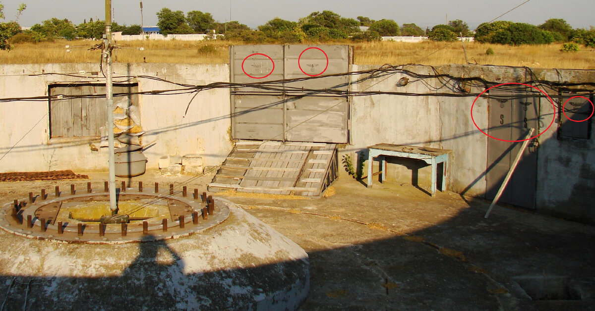 -5 шт. 45-мм пушек 21К. Где? Одна позиция находилась правее бывшей советской батареи №19 (батарея М.С,Драпушко). Возможно, кто-то обращал внимание на немного неаккуратно отлитые фундаменты. Ранее здесь находилась учебная 45-мм батарея школы БО и ПВО ЧФ. Еще два орудия располагались рядом с фортом «Северный». Это бывшие «доты» школы морпогранохраны НКВД (обычно их обозначают под номерами 5а и 6а), захваченные противником.
