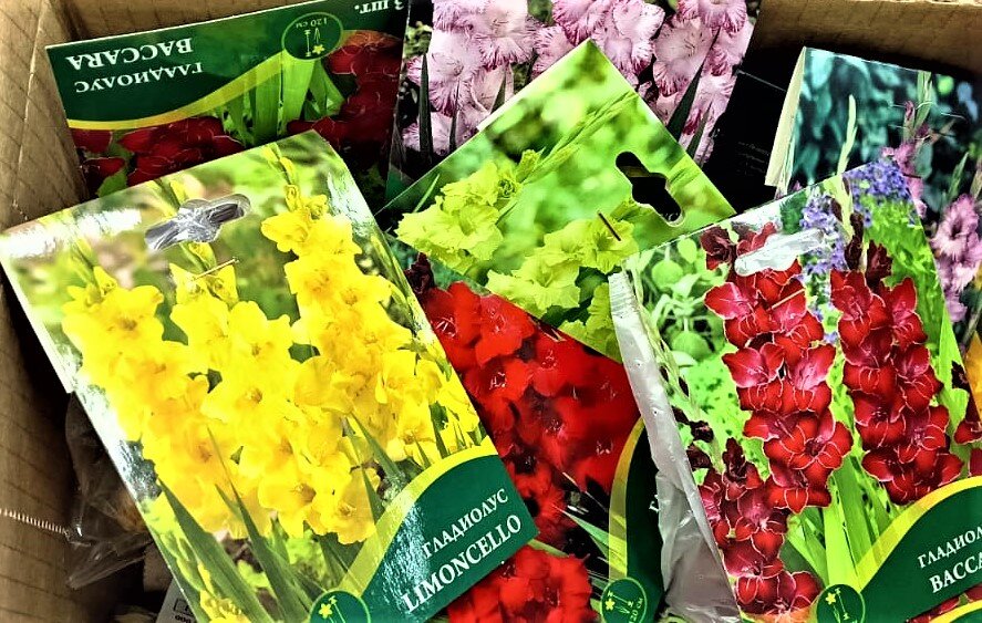 Так что я стала рассматривать гладиолусы в Фикспрайсе. Ассортимент тут неплохой. Все расфасованы по 3шт. Цена 79р за упаковку.