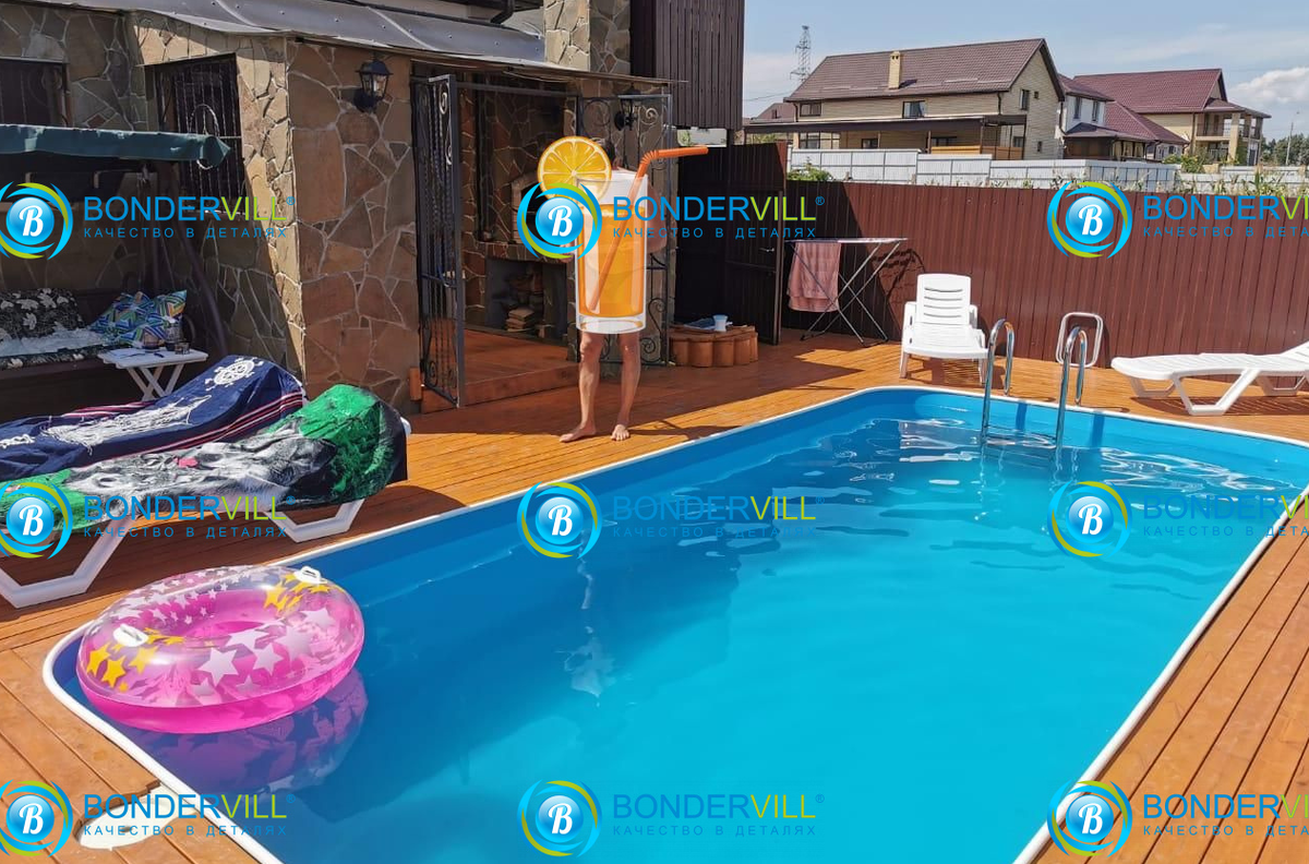 Хотите летом наслаждаться приятным купанием в своем бассейне? Тогда следуйте этим простым рекомендациям для его ухода: 1. Чтобы вода в бассейне не застаивалась, ей необходима постоянная циркуляция, которая осуществляется во время купания постоянно работающим насосом. 2. Необходим контроль уровня кислотности воды. Его нужно проводить не реже одного раза в неделю. Кислотно-щелочной баланс нормализуют препаратами, содержащими бисульфат натрия. Нормальный уровень — 7-7,5 единиц. Замеряют кислотность электронным прибором — pH-метром, а еще это можно делать при помощи лакмусовой бумажной полоски. 3. Только что набранную воду сразу надо обработать хлорсодержащим составом. Хлорирование происходит на протяжении 8-12 часов, и в течение этого времени следует воздержаться от купания. Уход за бассейном на даче нужно делать в теплый день, чтобы вода прогрелась до температуры минимум 16°С. Обработка хлором не должна смущать в плане неприятного запаха, он за 3 часа уже практически не будет ощущаться,