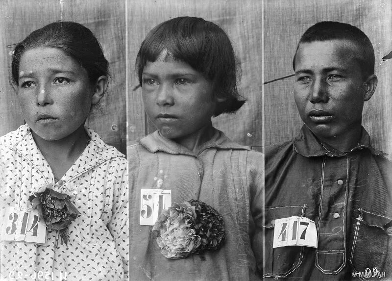 На фотографии ниже 2 девочки 12 лет (слева) и девушка 18 лет справа деревни Полканово Забайкалья. Это не заключенные, их номера просто были нужным ученым для фиксации в архивах.
