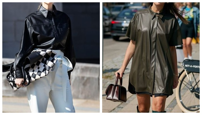 Весной 2023 года женские образы будут привлекать к себе внимание благодаря кожаным рубашкам. Эта трендовая вещь отлично впишется в многослойные, а также минималистичные образы, заменит собой верхнюю одежду, в более теплую погоду. Оставайтесь с нами, прямо сейчас гуру моды поделятся эффектными вариантами весенних аутфитов с кожаными рубашками разных цветов. Стилисты готовы представить яркие и эффектные рубашки из кожи, некоторые модели идут в одном комплекте с тонким ремешком. Кутюрье добавили разнообразия женскому гардеробу, выпустив коллекцию модных рубашек, как с коротким, так и длинным рукавом. Красная рубашка с коротким рукавом из кожи + темно-синие джинсы — эффектное сочетание на каждый день, в котором вы будете чувствовать себя в центре внимания. Рубашка из кожи благородного цвета марсала + кожаный низ в таком же оттенке — красивый вариант костюма на каждый день и не только. Аутфит, который покорит сердца абсолютно всех модниц, без исключения включает в себя яркую кожаную рубашк