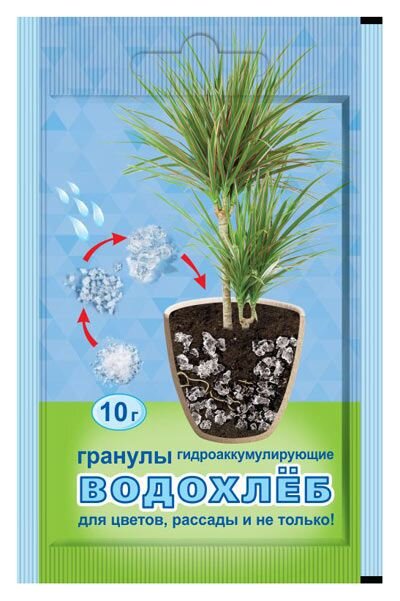 Перлит и вермикулит можно заменить гидроаккумулирующими гранулами «Водохлёб». Материал имеет высокую гигроскопичность, 1 г гранул впитывает 200-400 мл воды. При добавлении «Водохлёба» в почвенную смесь проблема перелива исключается, гидрогель впитывает излишки воды, а по мере высыхания грунта отдаёт их обратно. Это свойство полезно и для корневых подкормок, т.к. обеспечивает равномерное поступление питательных веществ. Гидроаккумулирующее средство имеет минимальный расход, пакета массой 10 г достаточно для приготовления 5 л почвенного субстрата.