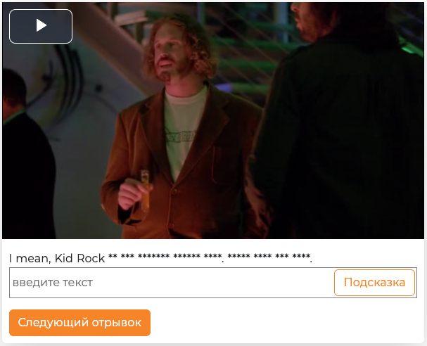 Вот и прошла уже неделя с моего предыдущего поста о создании стартапа, помогающего людям научиться понимать английский язык на слух. Кратко о проекте, если вы пропустили мой предыдущий пост. Я создаю Fennec.team. Сервис, позволяющий прокачать понимание английского языка на слух. Сам процесс очень простой. Заходите на сайт, выбираете краткий отрывок из сериала (в данный момент есть только Кремниевая долина первый эпизод), слушаете что говорят герои и вводите это в специальное текстовое поле. Результат за неделю Общение с первыми пользователями показало одну важную проблему. В отрывках часто упоминаются имена, названия городов, компаний и просто употребляются редкие слова. Или даже произносимый текст совсем нельзя разобрать. Все это мешает сфокусироваться на тренировках и получать удовольствие. Для решения этой проблемы я добавил "шаблон", отображающий текст который пользователь должен ввести. К примеру, в отрывке ниже, разобрать начало фразы "I mean" практически невозможно, да и как пра