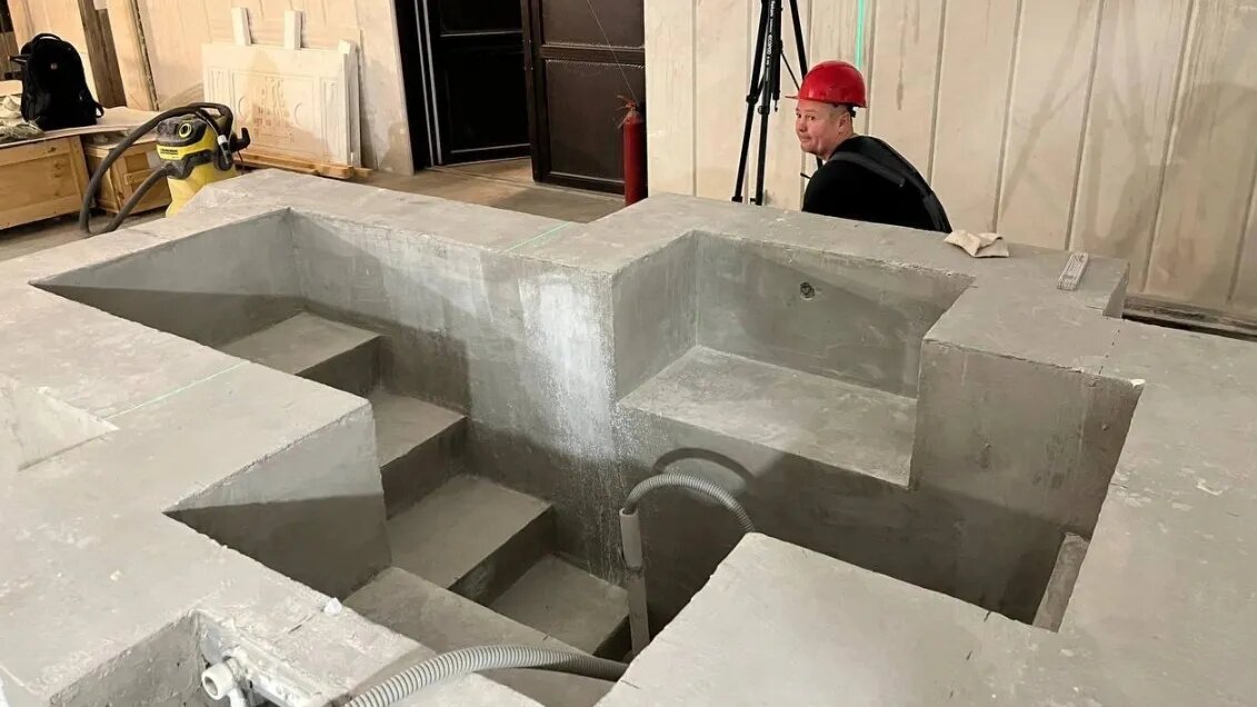 В главном храме Салехарда монтируют мраморную купель для обряда крещения