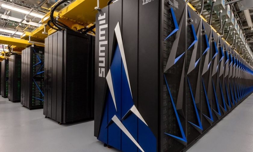Абсолютный лидер, самый мощный суперкомпьютер в мире, был разработан IBM и лабораторией Оук-Ридж. Заявленная производительность — 187 петафлопс (пока она составляет 143,5), или 187 тыс. трлн вычислений в секунду. Пока характеристики выглядят так: IBM Power System AC922, IBM POWER9 22C 3.07GHz, NVIDIA Volta GV100, Dual-rail Mellanox EDR InfiniBand, 2,28 млн. ядер и более 2 млн ядер Nvidia. Машина занимает площадь, равную двум теннисным кортам, имеет оперативную память объёмом 10 Пбайт и состоит из 4 608 серверов. Комплекс больше напоминает ряды книжных полок в библиотеке, на вкоторых располагаются многочисленные узлы, коих насчитывается 4608 штук. В каждом размещены комплектующие, отвечающие за вычислительные способности суперкомпьютера. Для соединения элементов системными администраторами было проложено порядка 300 км оптоволокна. При работе всех компонентов устройства нахождение внутри комплекса может быть опасным для слуха. Работники лаборатории заходят в помещение с суперкомпьютером