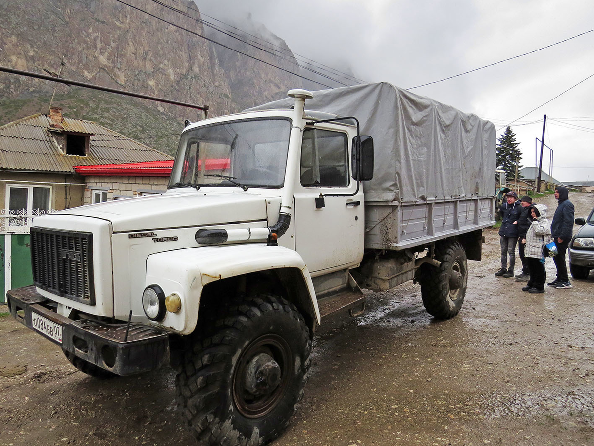 Хоть ехать и недалеко, дороги по горам такие, что наш водитель микроавобуса остался в доме, а на сегодня транспортом стал грузовик с тентованным кузовом. Поехали с расширенном составе - за нами как-то увязалась хозяйская собака:
