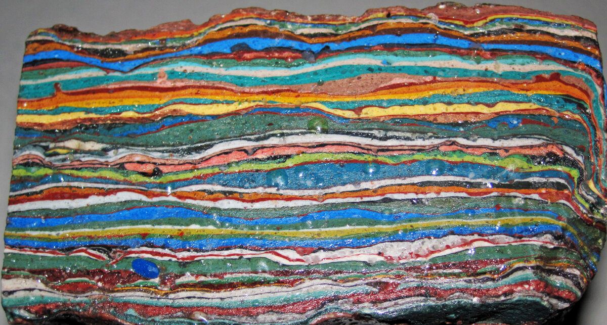 Радужной кальциликой называют искусственный поделочный камень, который становится все более популярным благодаря своей декоративности, разнообразию и дешевизне. Несмотря на рукотворное происхождение, кальцилика пользуется спросом у коллекционеров и любителей украшений, правда, большей частью люди не понимают, что за камень они купили. Оттенки кальцилики охватывают весь спектр радуги, цвета расположены в замысловатых узорах, которые никогда не повторяются. Камень отлично шлифуется и полируется до блеска, что еще больше подчеркивает его красоту и яркость. Слово «кальцилика» (calsilica) представляет собой комбинацию слов «кальцит» и «силикат» (кремнезем), которые и являются двумя основными материалами, использованными при его создании. Кальцилика была впервые создана в 1990-х годах в Мексике, создатели камня искали способ совместить природную красоту полосатых камней с прочностью керамических материалов. Камень быстро стал популярен среди коллекционеров и энтузиастов, а примерно двадцать