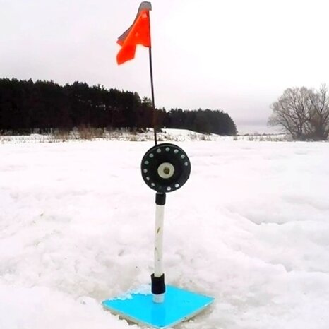 Приветствую вас дорогие коллеги по увеличению. Эта информация будет очень полезна для тех, кто хоть иногда ловит зимой на жерлицы. Чаще всего, мы со своим скарбом и заранее купленным живцом оказываемся на водоёме одними из самых первых. Надеясь на отличный улов, ещё впотьмах, устанавливаем снасти на самые перспективные места и с нетерпением ждём заветного стрельнувшего флага. Конструкции жерлиц у нас всех очень разные, но практически у всех остаётся одна очень неприятная проблема. Это перехлёсты лески за ось катушки. Очень обидно бывает, когда подходишь к заветному флагу, несколько колец лески упали на ось и хищник, почуяв подвох выплюнул измятого живца. А ведь это мог быть единственный флаг за всю рыбалку. Я для себя решил эту проблему и поделюсь своим решением с вами, может быть оно подойдёт и для вашей конструкции жерлиц. Решение было простым. Вертикально наклонить ось вместе с катушкой, и ставить жерлицы осью к ветру. После такой процедуры на моих жерлицах за 3 сезона ло