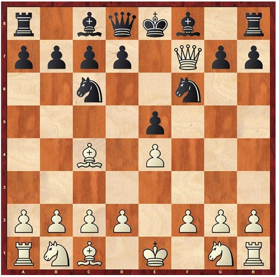 3. ход. Белые ставят ферзя на h5!!! Здесь черные должны правильно сыграть, потому что им угрожает мат на f7 ферзем.