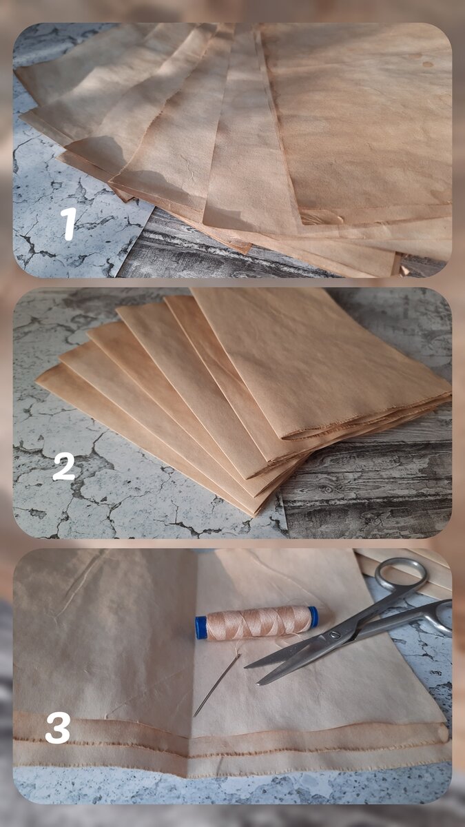 Как и обещала рассказываю, как делала блокнот в винтажном стиле из предыдущего поста (там вы можете посмотреть результат работы). А сейчас о процессе создания: 1. Взяв обычные листы А4 я вырезала двойные страницы для будущего блокнота. Состарила при помощи кофе, высушила феном. 2. Выровняла странички и сложила по пополам. 3. Сшила пары разворотов. 4. Скрепила листы зажимами для бумаги, сшила все вместе. 5. Вот что вышло. 6-7. Промазываю клеем ПВА переплёт. Приклеиваю отрезок бинта. 8-9. Вырезаю будущую обложку из переплётного картона. Клею на ткань при помощи ПВА. 10. Закрасила акриловой краской. 11-12. Покрываю частично грунтом, в грунт погружаю так же кусок бинта. Бинт застынет вместе с грунтом. 13. У меня было лишь голубое кружево, поэтому я покрываю его чёрным акрилом. 14. Покрыли обложку чёрной краской. 15. Приклеила кружево по краю. 16-17. Готовлю декор. 18. Наклеила пластиковые цветочки. Они клеевые, но я его снимаю, и использую свой клей, та