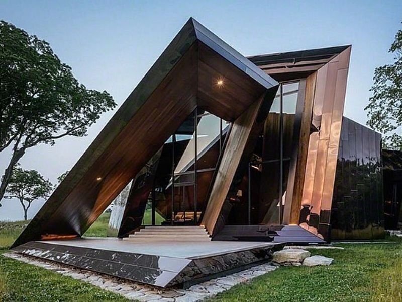 Поскольку мы пишем про архитектурные стили загородных домов, сразу оговоримся, что построить свой дом в стиле деконструктивизм могут только большие оригиналы с очень большими деньгами. Один проект чего стоит … Деконструктивизм – он такой один … Нет другого архитектурного стиля, имеющего не эстетические, исторические, технологические и другие объективно существующие истоки, а основывающегося на гуманитарных, философских умозаключениях, стремящихся к оригинальности авторов. Идеологическим отцом деконструктивизма был философ Жак Деррида, который и придумал это слово для определения необычного способа прочтения произведения с целью создать конфликт его смысла с уже знакомой интерпретацией и выявить метафоры, запечатлевающие следы последующих эпох». Правда, хорошо? Некоторые молодые архитекторы горячо поддержали французского философа и принялись воплощать в проектах отказ от основ, традиций, удобства, эстетики и пользы. И принялись городить, извините, творить, кто во что горазд —