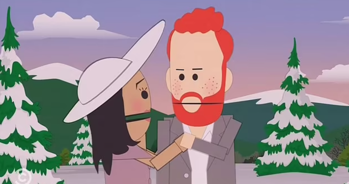 Если Меган мечтала стать звездой популярного шоу - то ее мечта по-настоящему сбылась. Вместе с Гарри в день всех влюблённых они стали героями одного из самых спорных и бескомпромиссных шоу на американском ТВ - Южный парк. ТВ-мультсериал известен тем, что не признает авторитетов и тонко высмеивает политиков, актеров и разного вида популярных деятелей, поэтому почти никто не удивился, увидев пару среди героев очередного нового эпизода. Серия была названа "Как принц Канады и его жена искали свою конфиденциальность" и уже это настроило зрителей на нужный лад. Суть эпизода заключается в том, что пара ходит по земному шару держа в руках плакаты. "Хватит говорить и искать нас" - написано на одном. "Мы хотим нашу приватность" - гласит второй. Но аллюзия в том, что на своем пути они проходят через телешоу, разные публичные появления, съёмки в журналах и все, что можно представить. Все, что совершенно не вяжется с конфиденциальностью и приватностью. Таким обзразом авторы в очередной раз подчеркн