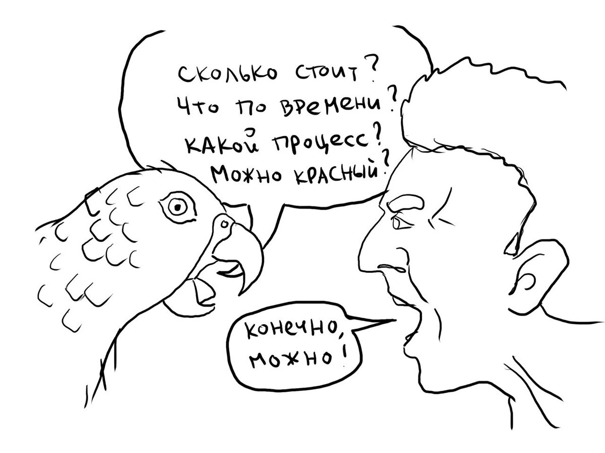 Чтобы не обижать ни клиентов, ни исполнителей, стараюсь задавать по одному вопросу за раз. Так быстрее получаю ответы и не ставлю собеседников в глупое положение.
