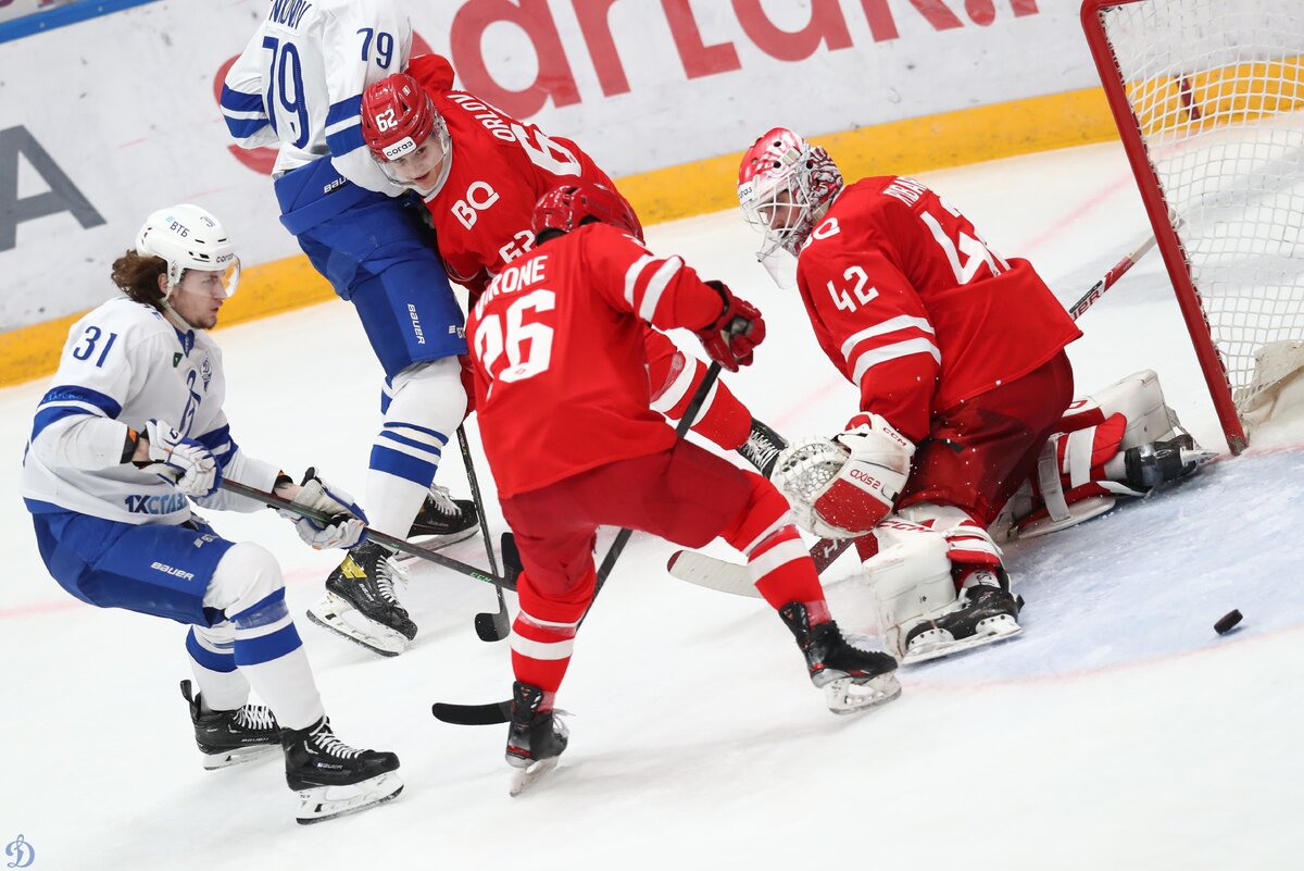 «Спартак» рвется в плей-офф. Московское дерби завершилось победой красно-белых над «Динамо» со счетом 2:1. После матча наставники команд поделились эмоциями от ледового противостояния. ЭТО ДЕРБИ Главный тренер московского «Динамо», Алексей Кудашов подвел итог встречи: «Эмоции неважные. Есть хорошее и плохое. Разберем наши ошибки и сделаем выводы». Два дня назад после матча вы говорили, что не хватает реализации моментов при розыгрыше лишнего. Сегодня и моментов в большинстве не было. Почему? — Мы не то, что не создали — еще и гол пропустили. В прошлой игре мы две забили в большинстве, а соперник перестроился и больше не дал. Выше и ниже пятого места «Динамо» уже не поднимется и не опустится. Где искать мотивацию на оставшиеся матчи регулярки? — Мы не будет отходить от игры и серьезности настроя, несмотря на место в турнирной таблице. Игроки сейчас начнут набирать форму и возвращаться. Так что мы не будет играть эти игры кое-как, выставлять молодежку… Такого не будет. Андрей Миронов не