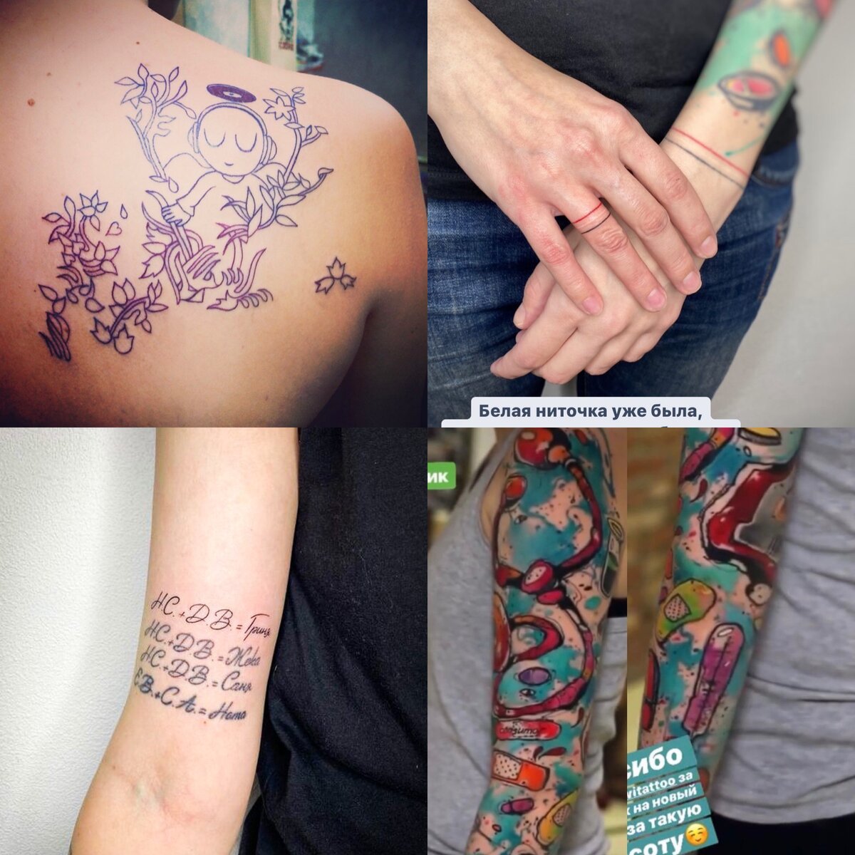 Приветствую, дорогие читатели! Заключительная часть про мои тату. Как-то спрашивали про цены. Поэтому расскажу сколько стоит и сколько времени тратилось, больно или не особо и веселые случаи. Начну с цен и времени: Больно было каждый раз, кроме полоски на пальце. Самое больное место было локоть, под коленом и на запястье. После тигра на бедре почти потеряла сознание в метро. Все остальные очень даже хорошо переносила. ⠀ Когда делала скрипичный ключик, то изначально договаривалась на цветную татуировку. Но пока мастер сделала контур, я поняла что хочу черно-белую. Этот сеанс был ровно 5 минут. Долго смеялись с мастером, потому что она закладывала минут 30-40. Сидела пила чай оставшиеся время. ⠀ А когда делала инициалы детей, то мастер до последнего ждала, чтобы спросить значение. Была так удивлена, что родила двойню и при этом довольно худая осталась. А потом была удивлена я, так как она в тот момент была на 5 месяце беременности. А я еще подумала «какая широкая футболка на ней». А де
