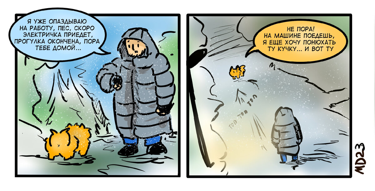 Прогулки по утрам это вечная борьба между желанием дать псу побольше впечатлений и необходимостью успеть на работу... а иногда и сделать хоть что-то с утра.