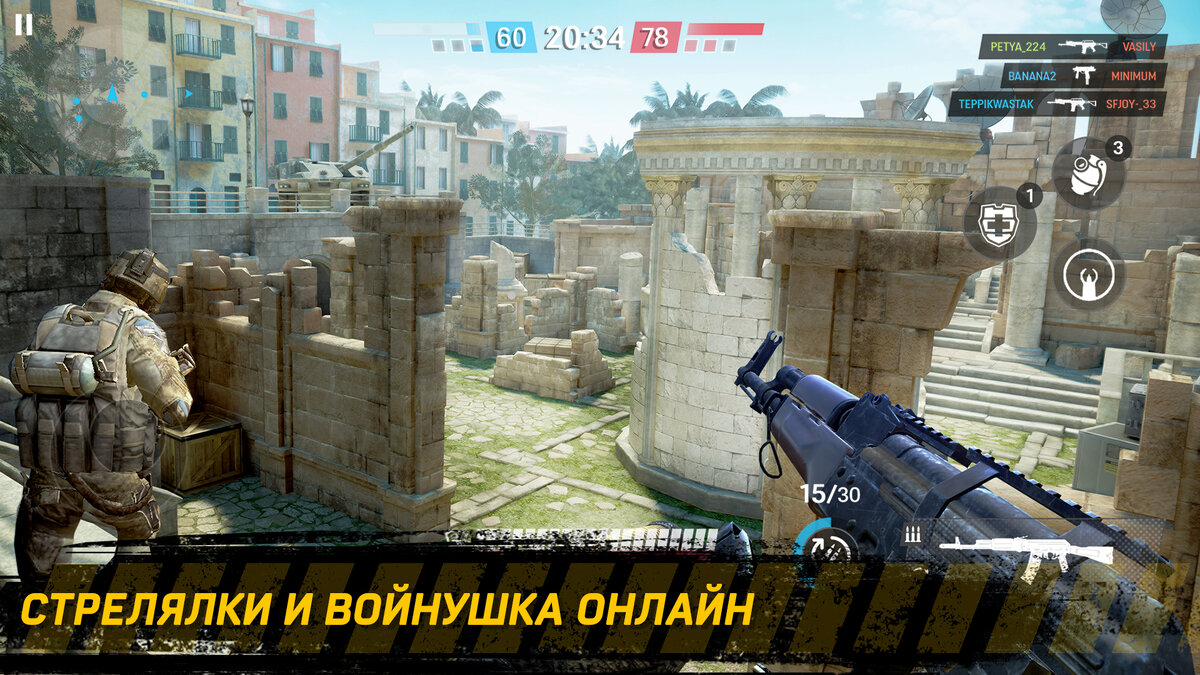 Warface: Global Operations — это еще один шутер от первого лица для Android и iOS, в котором нас ждут командные перестрелки на небольших участках. Игра получила несколько оригинальных локаций, качественное графическое оформление в полноценном 3D, отличную анимацию и приличное звуковое сопровождение. Традиционно для жара смысл происходящего по ту сторону экрана заключается в том, что мы должны приложить максимум усилий для победы нашей команды. Локаций в игре несколько и на каждой из них бывают разные задания. Например, нужно захватить наибольшее количество ключевых точек и постараться сделать так, чтобы наша команда владела ими дольше, чем оппоненты. Другой вариант задания заключается в банальном отстреле противников и сохранении жизни своему персонажу. В случае гибели последнего мы имеем возможность возродиться, причем количество воскрешений лимитировано только продолжительностью боя. Если перестрелка все еще ведется, примерно через три секунды после смерти подопечного получится возро