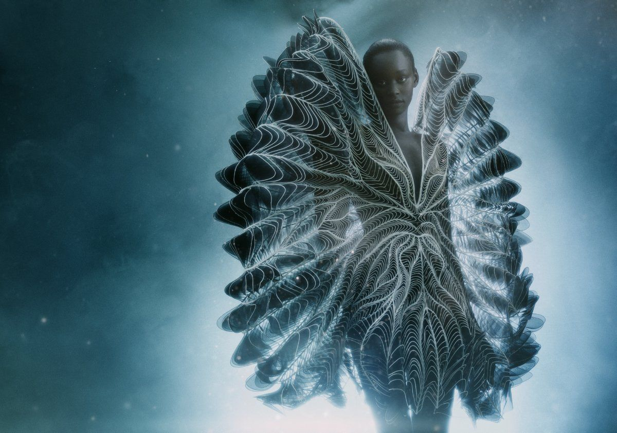 Iris Van Herpen — нидерландский модельер, открыла свой лейбл в 2007. У Айрис специфический подход к моделированию одежды. Здесь стирается грань между модой и технологичностью. На сцену выходит футуризм. В основе проектирования одежды — компьютерное моделирование и ручная работа. Она была первой, кто применил метод 3D-печати в моде. Для создания работ сотрудничает с биологами, архитекторами, программистами, черпая вдохновение и основу для работ на стыке разных направлений. Никаких традиционных канонов, бесконечное моделирование форм. Мода, технологичность и искусство? В данном случае всё это перетекаемые понятия без границ, а сами показы уже перформанс. Её работы были включены в Метрополитен-музей, Музей Виктории и Альберта, Смитсоновский музей дизайна Купер Хьюитт в Нью-Йорке и Токийский дворец в Париже.