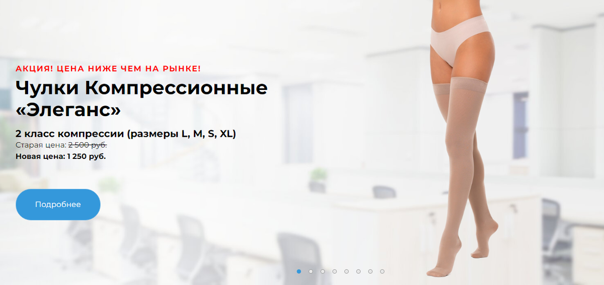 Противоварикозные компрессионные чулки Элеганс - это новая линия изделий лечебного трикотажа, спроектированная по современной технологии, с подбором сырья, обеспечивающим комфорт во время использования изделий. Трикотаж оказывает правильное градуированное давление, предотвращающее отеки и застой крови в венах, стимулирует работу мышечной помпы голени, ускоряет скорость оттока крови. Технология гладкой вязки делает изделия неотличимыми от обычных чулочно-носочных изделий, а выбор цветовой гаммы и сниженная акционная стоимость данной серии позволяет носить трикотаж на замену обычным чулочно-носочным изделиям. Мы стараемся реально сделать покупку для Вас максимально выгодной.