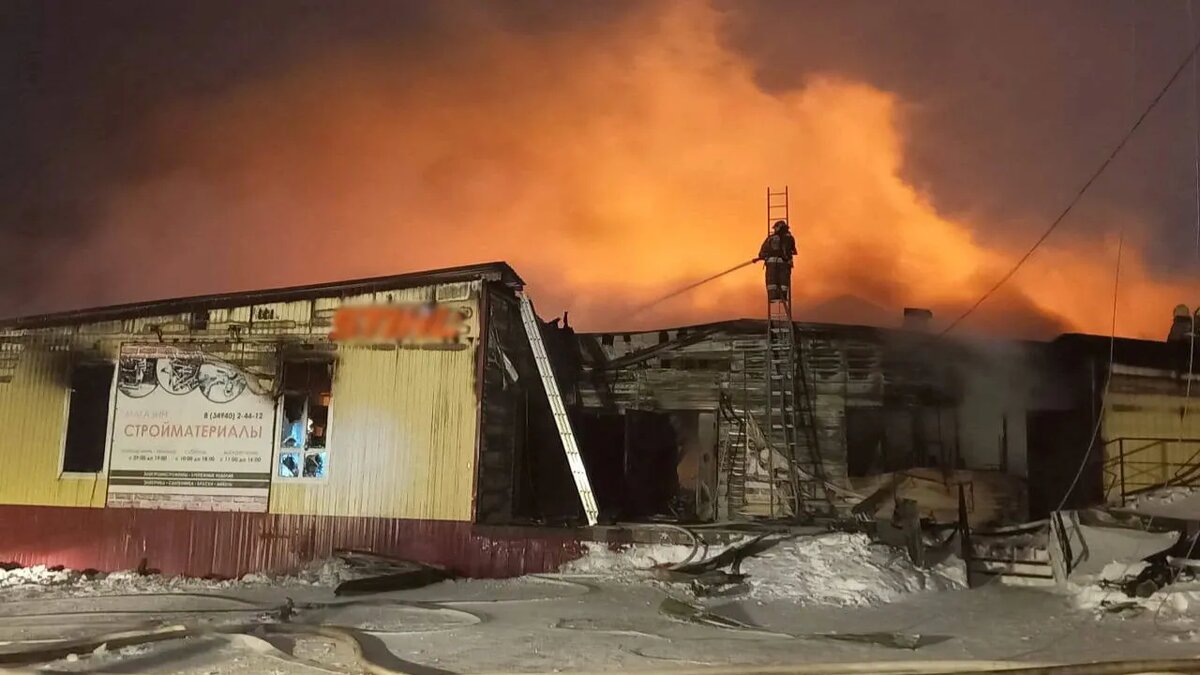 В Тазовском на тушение крупного строительного магазина подняли весь личный состав пожарных
